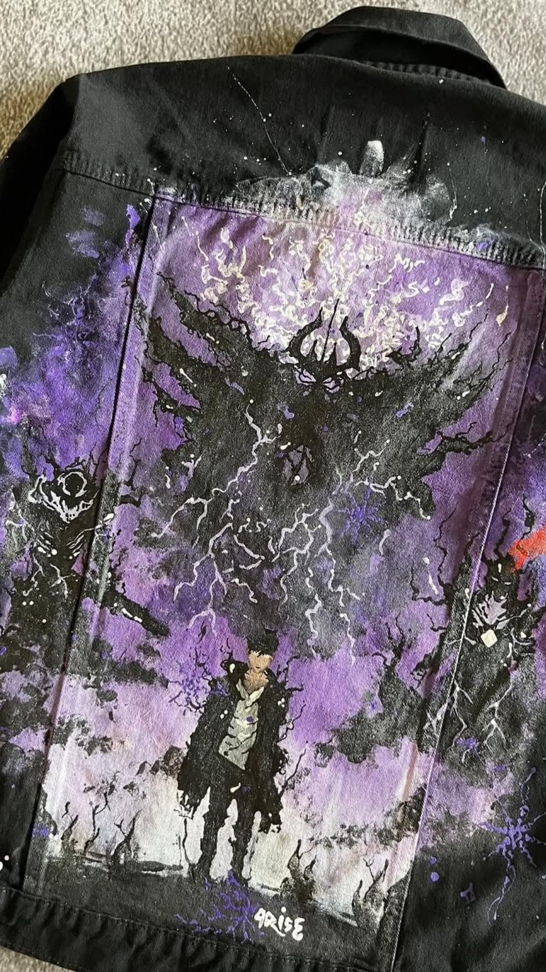 For fans who want to channel their inner Jin-Woo, fashion has become a powerful way to rep their fandom. Streetwear culture and anime collide in unique, hand-crafted designs that reflect the dark, edgy aesthetic of Solo Leveling. 🔥 One standout piece? The Sung Jin-Woo Jacket – Hand-Painted Denim for Anime Streetwear Fans.