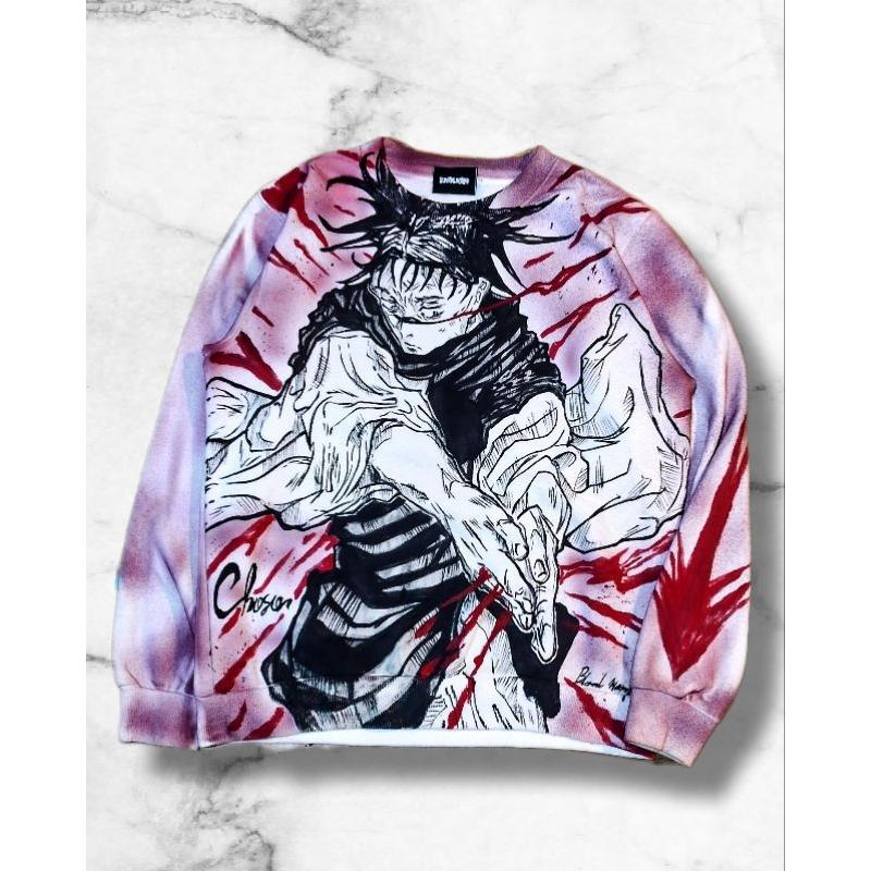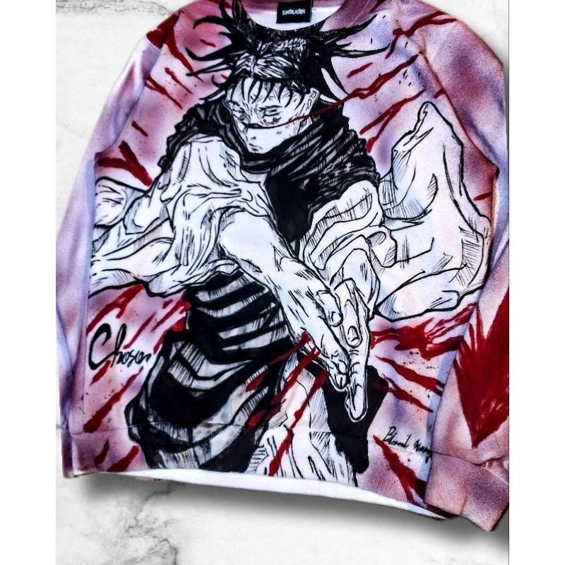 White Hand-Painted Choso JJK Crewneck – Unique Anime Sweatshirt for Cosplay & Streetwear Style